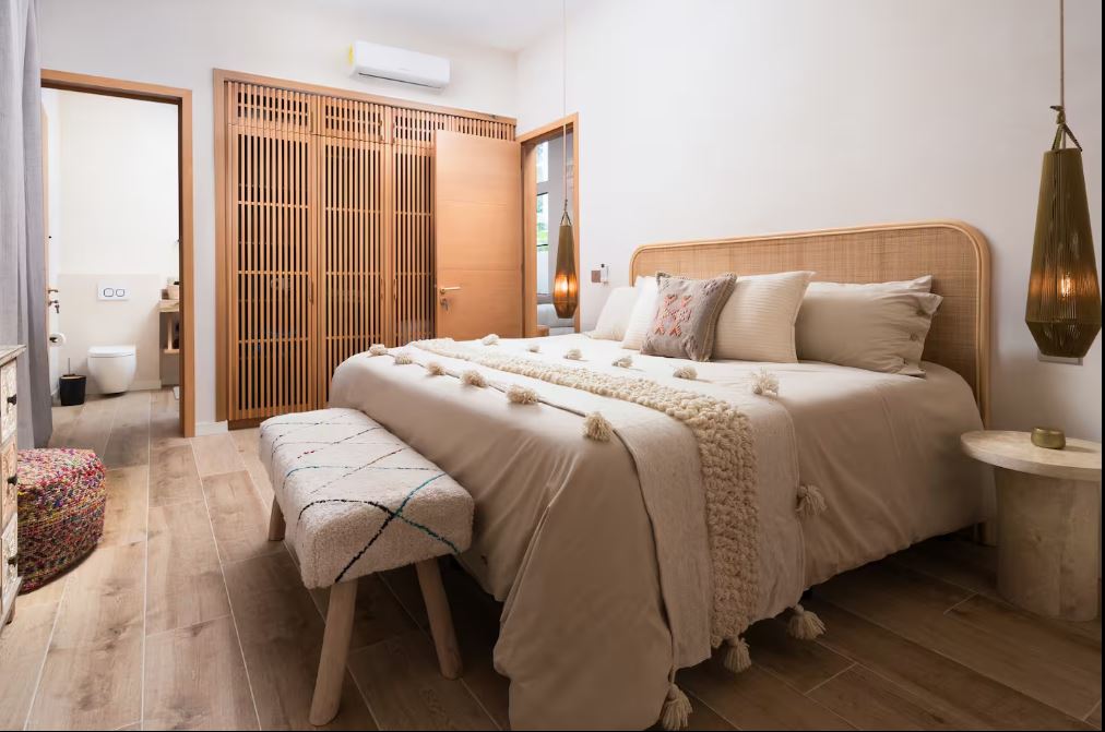 Los espacios comunes, inspirados en el estilo marroquí, destacan por sus arcos suaves, materiales naturales y una atmósfera cálida y acogedora.