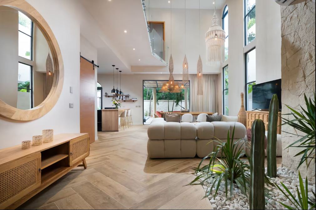 La villa está diseñada para disfrutar plenamente del estilo de vida interior y exterior, rodeada de luz y vegetación tropical.