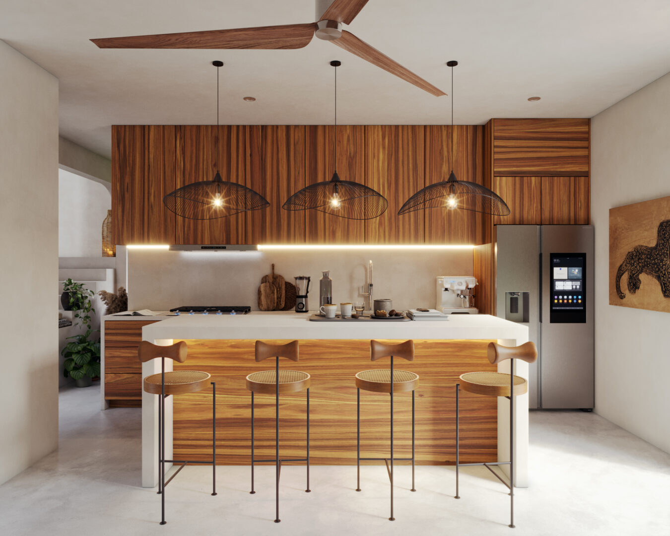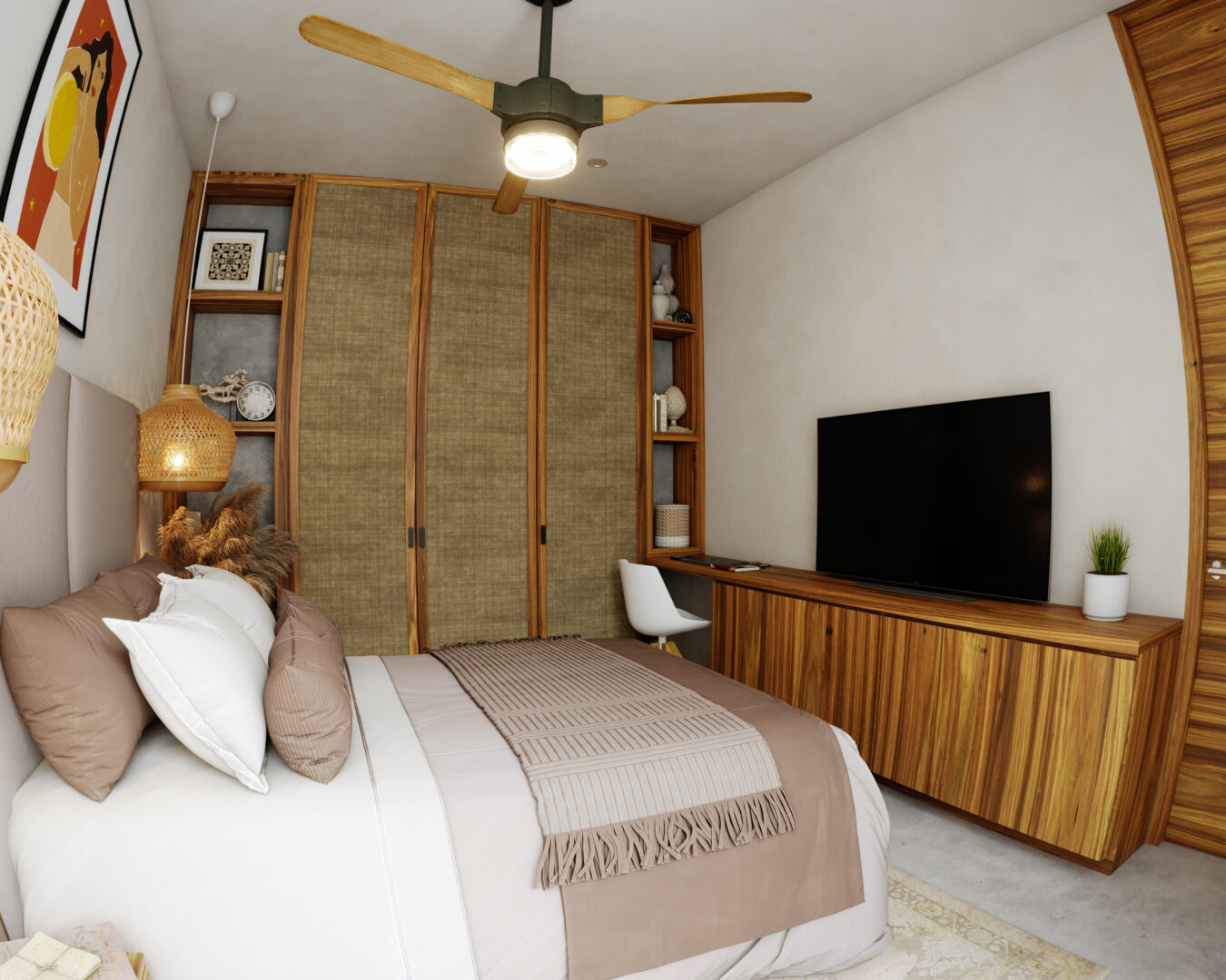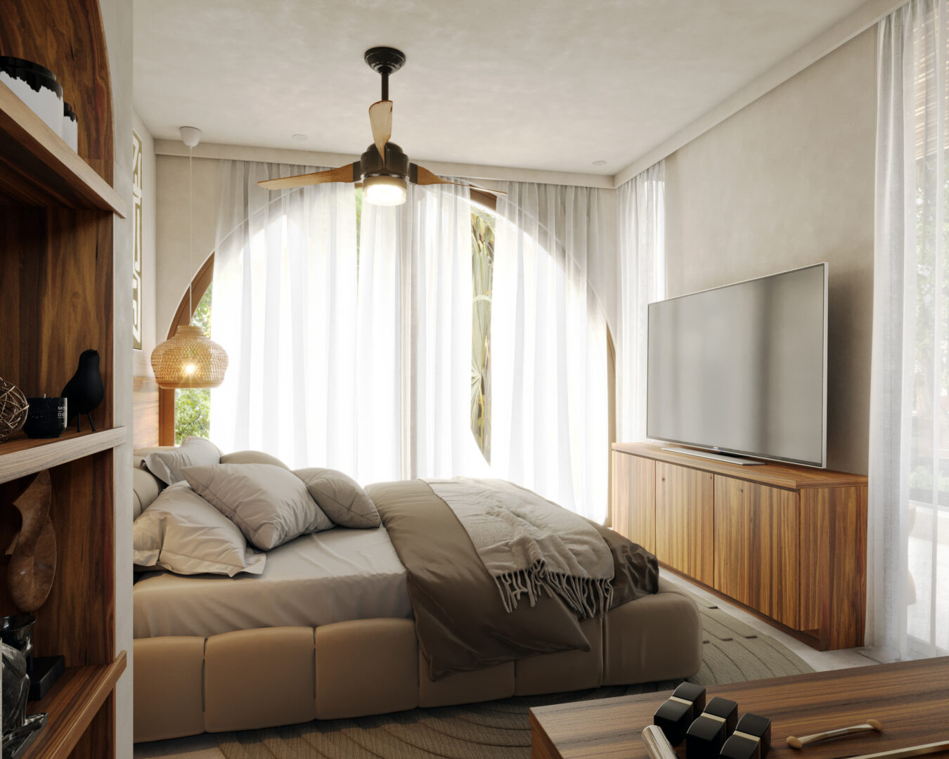 Cada acceso y transición diluye los límites entre el interior y el exterior. La arquitectura, que fusiona la herencia maya con un lenguaje contemporáneo, logra un equilibrio perfecto entre amplitud e intimidad. El diseño invita a vivir momentos que perduran, mientras cada detalle ha sido cuidadosamente pensado para integrar el entorno natural al interior, creando una atmósfera de serenidad, armonía y lujo atemporal.