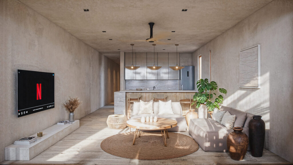 Con un enfoque en el lujo consciente, integra tecnologías sustentables como paneles solares y un sistema de captación de agua pluvial, optimizando el uso de recursos naturales. Estas innovaciones no solo reducen el consumo energético y el impacto ambiental, sino que también disminuyen los costos de mantenimiento y fortalecen la plusvalía del desarrollo.